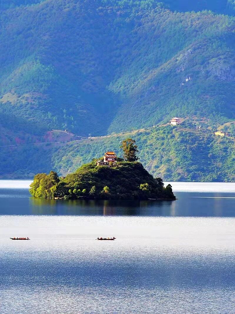 太陽升至半空,晨霧徹底散去,瀘沽湖的湖面波光粼粼,生態(tài)警務(wù)正悄無聲息地融入瀘沽湖的晨光與暮色,守護(hù)著這片山水的清澈與安寧。
