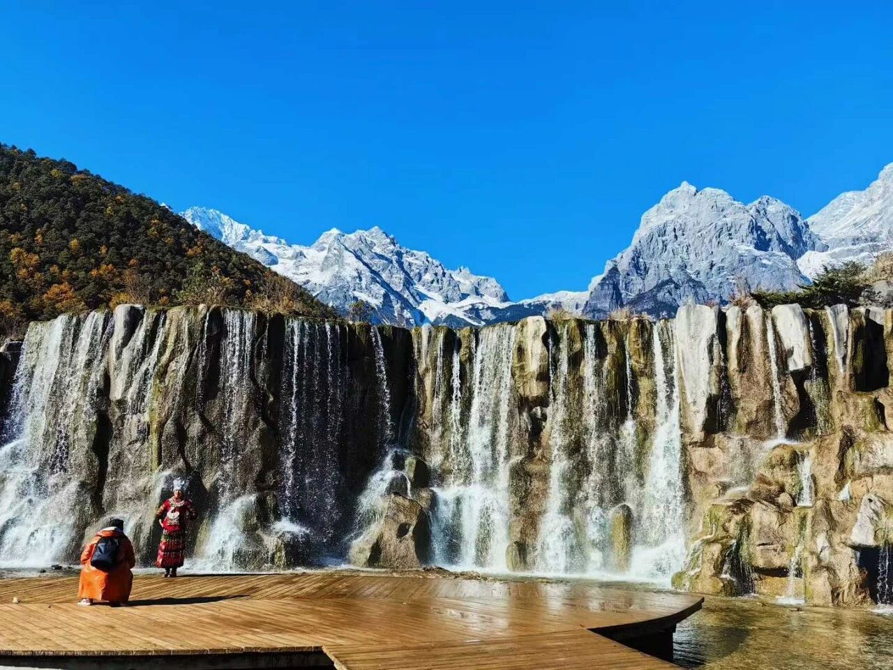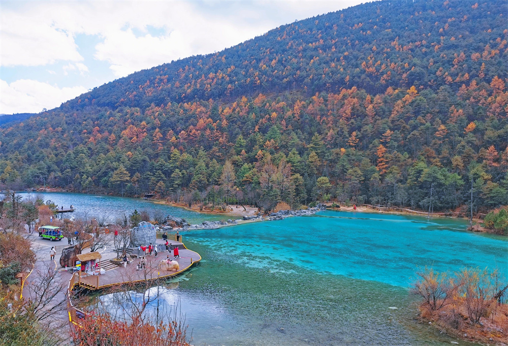 冬日的云南麗江藍(lán)月谷,是被雪山與彩林環(huán)抱的“翡翠秘境”。